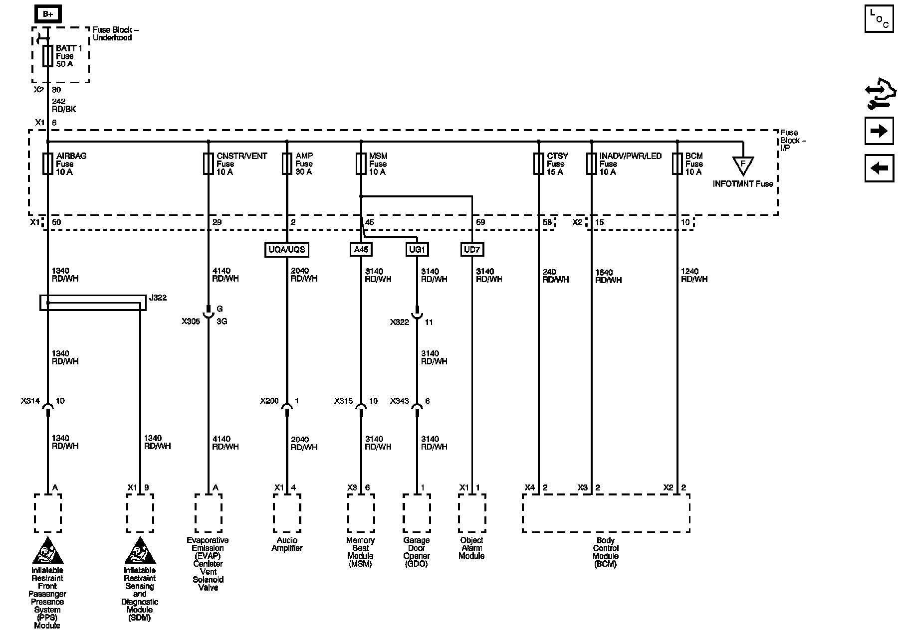 AIRBAG, AMP, BATT 1, BCM, CNSTR/VENT, CTSY, INADV/PWR/LED, and MSM Fuses