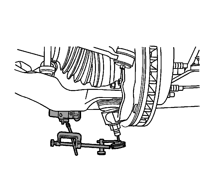 5. Install and position the dial indicator from J 8001 against the end of the ball joint.