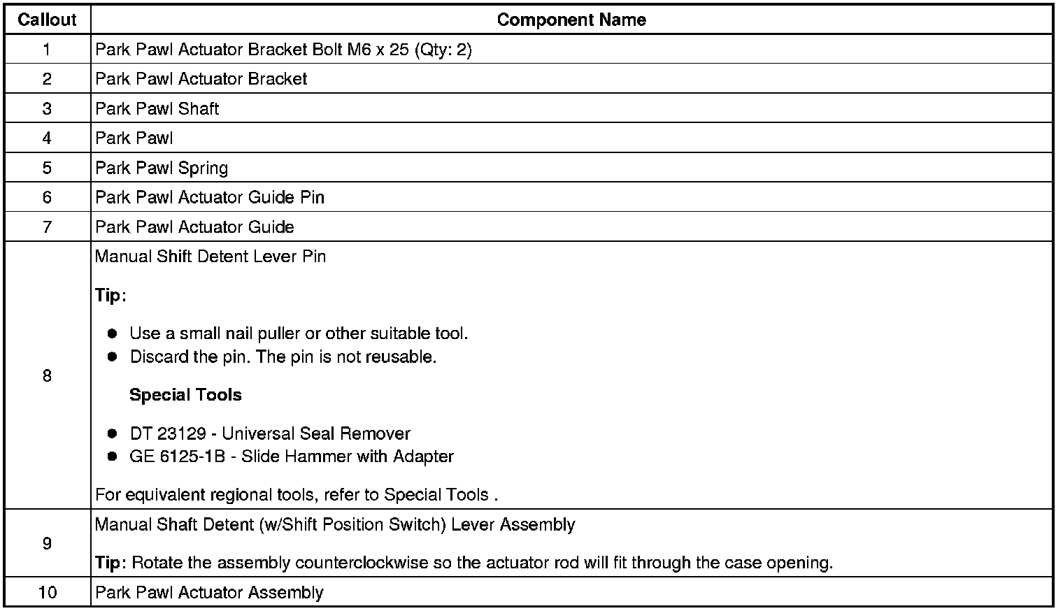 11. Manual Shift Detent Lever With Shaft Position Switch Assembly and Park Pawl Actuator Removal