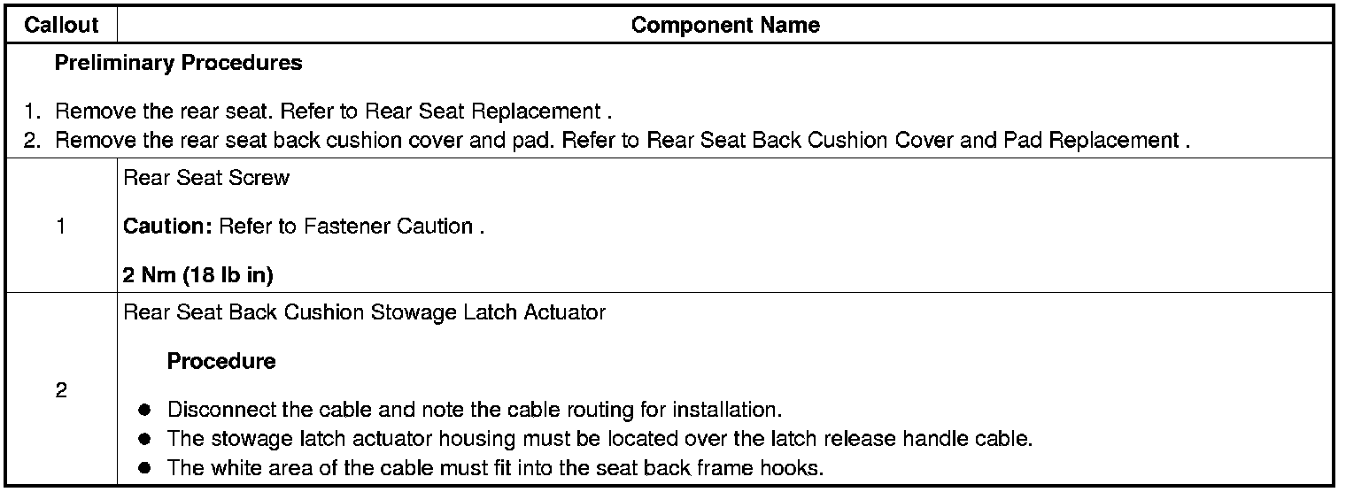 Rear Seat Back Cushion Stowage Latch Actuator Replacement
