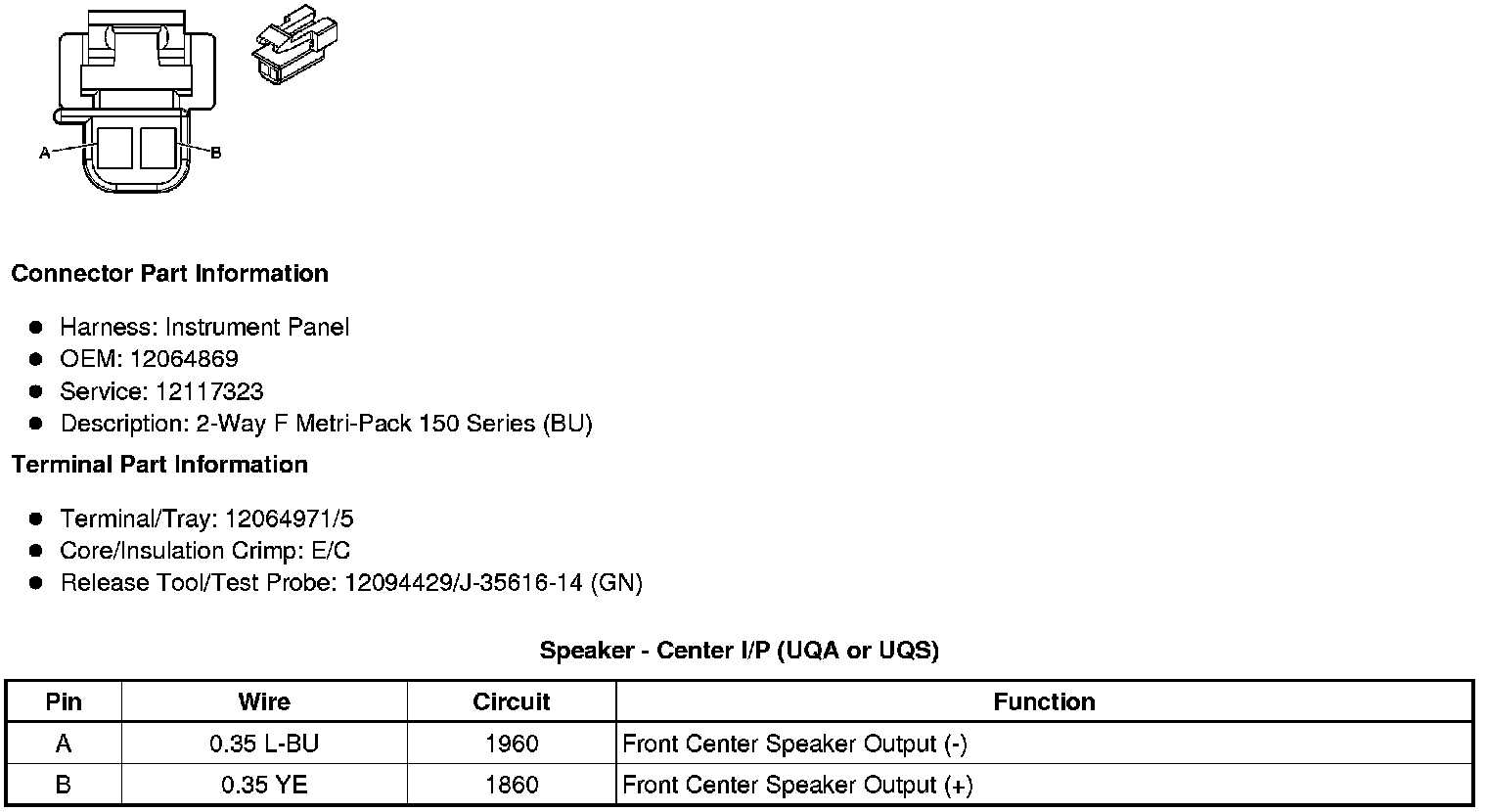 Speaker - Center I/P (UQA or UQS)