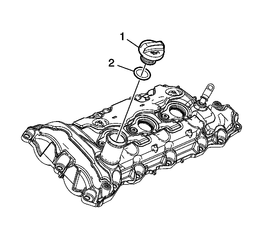 Note: The oil fill tube should NOT be removed as it will crack the camshaft cover. If the oil fill tube is damaged or leaking the tube, O-ring, AND camshaft cover must be replaced. The only separately serviceable components are the oil fill cap and oil fill cap O-ring.