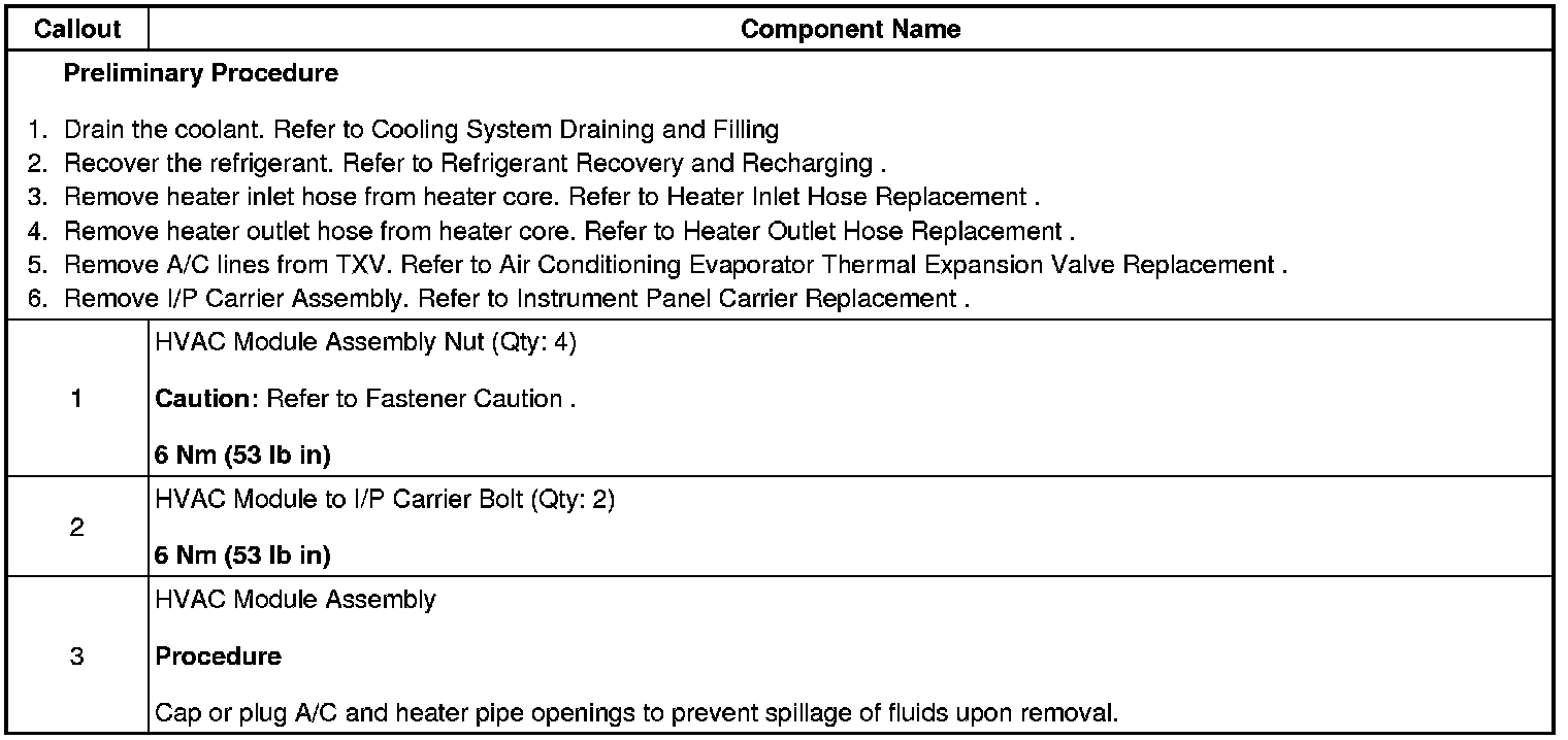 Air Conditioning and Heater Module Assembly Removal and Installation