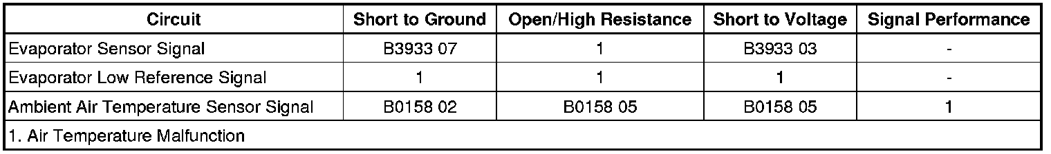 Evaporator Temperature Sensor Circuit Malfunction