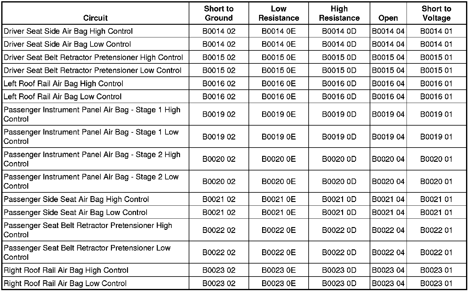 - Passenger Instrument Panel Air Bag Deployment Loop Stage 2 Short to Ground