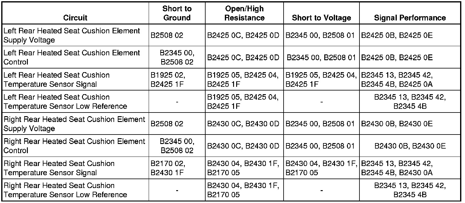 If the DTC set in the rear heated seat module, refer to Circuit/System Testing below.