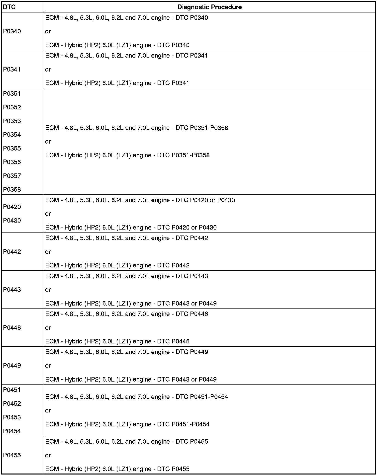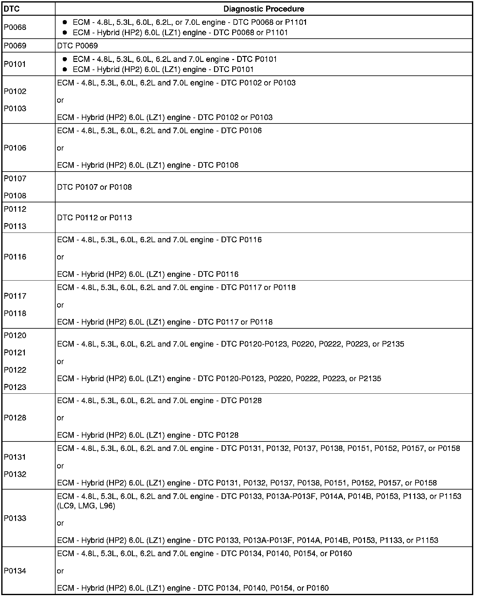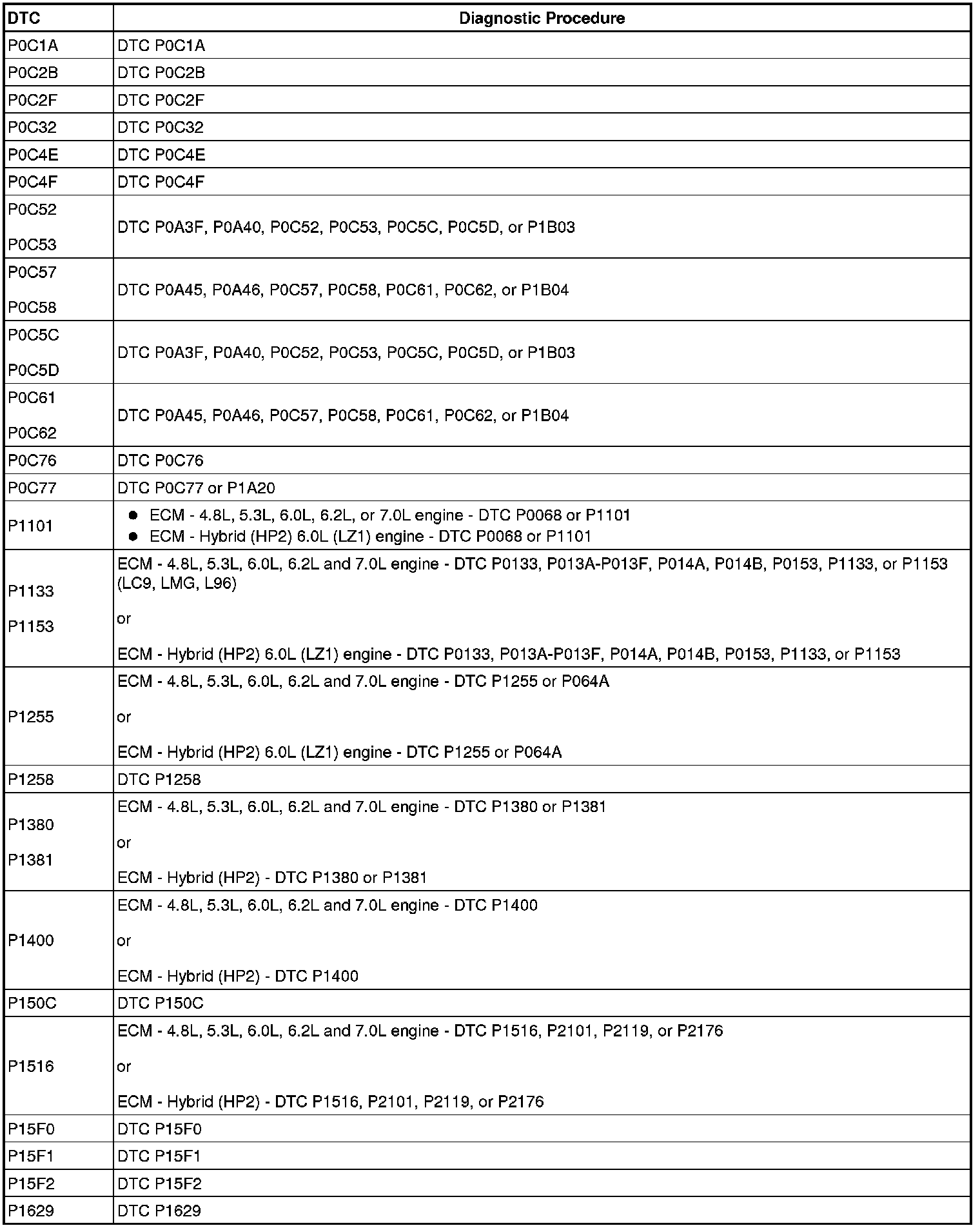 A L L Diagnostic Trouble Codes ( DTC )