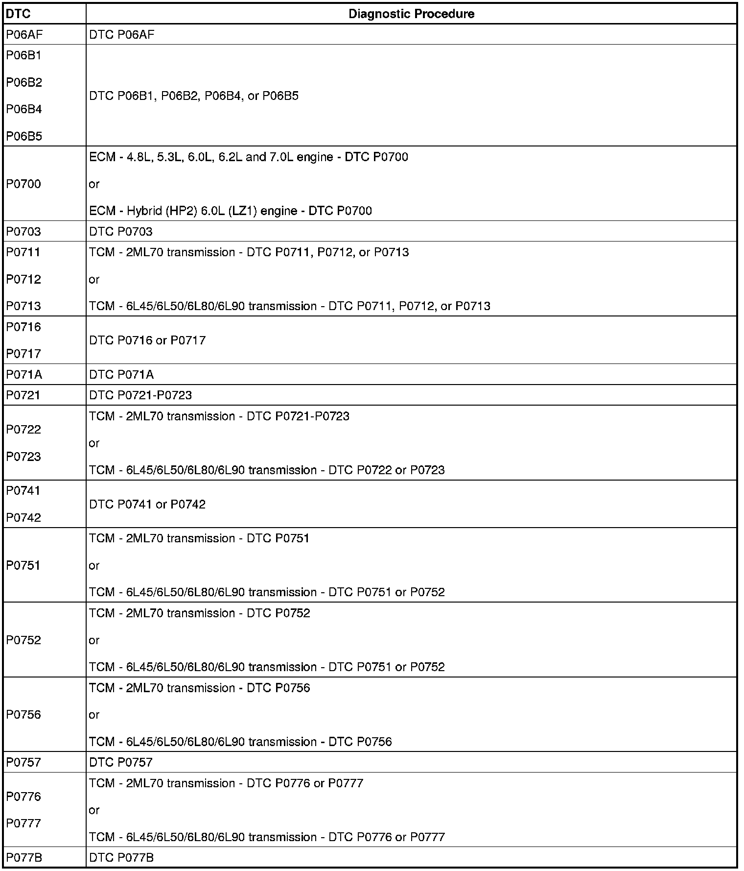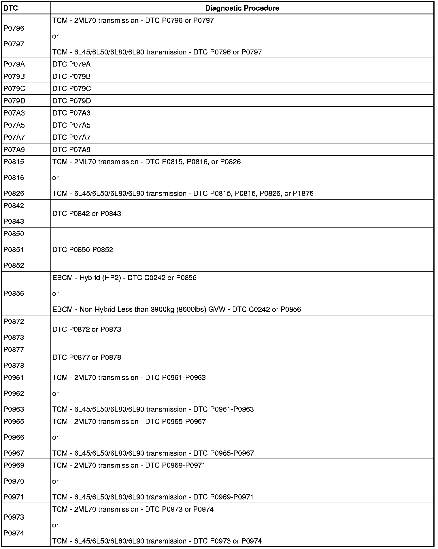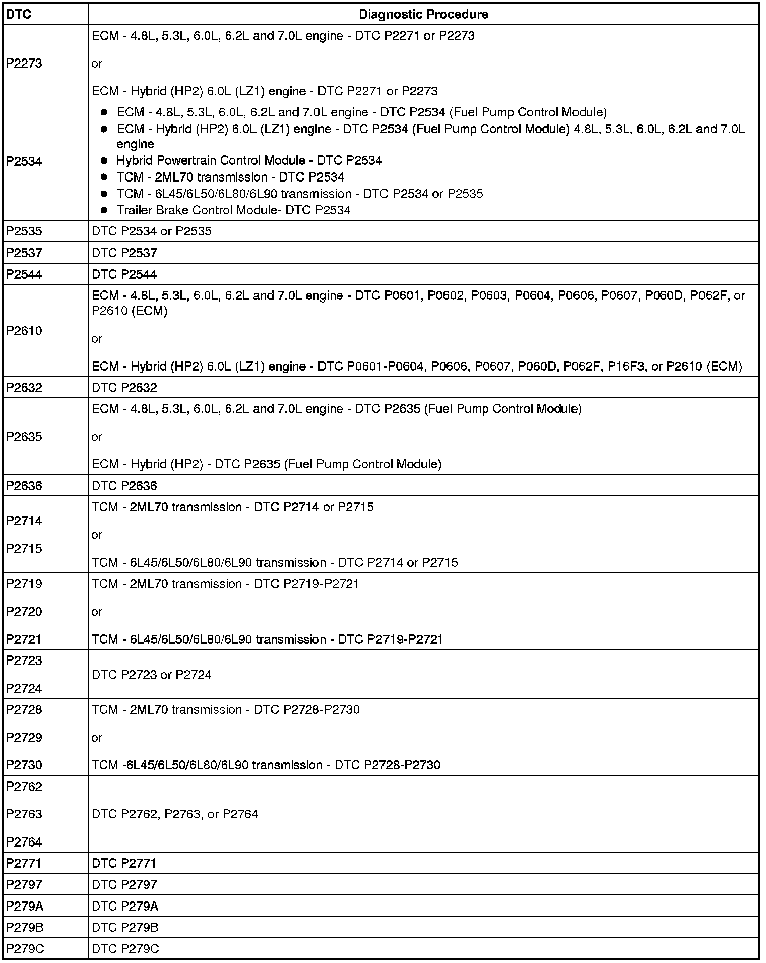 A L L Diagnostic Trouble Codes ( DTC )