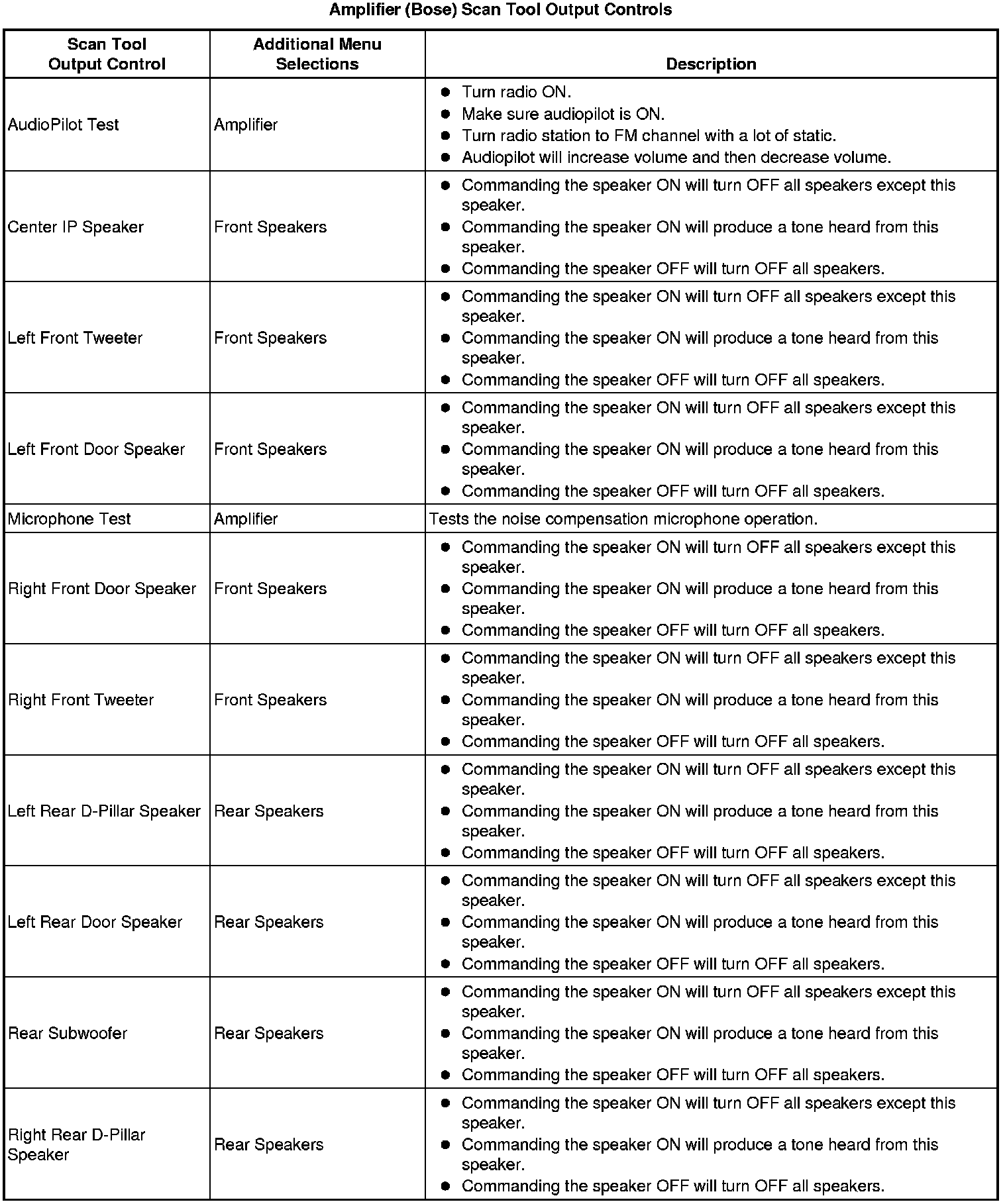 Radio Speaker Amplifier Scan Tool Information