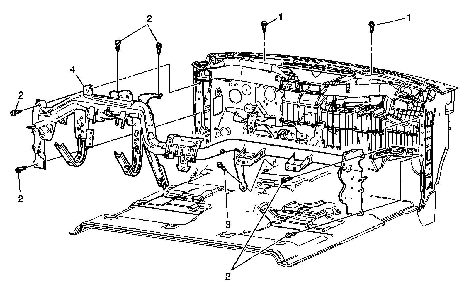 Instrument Panel Carrier Support Replacement (Except Cadillac)