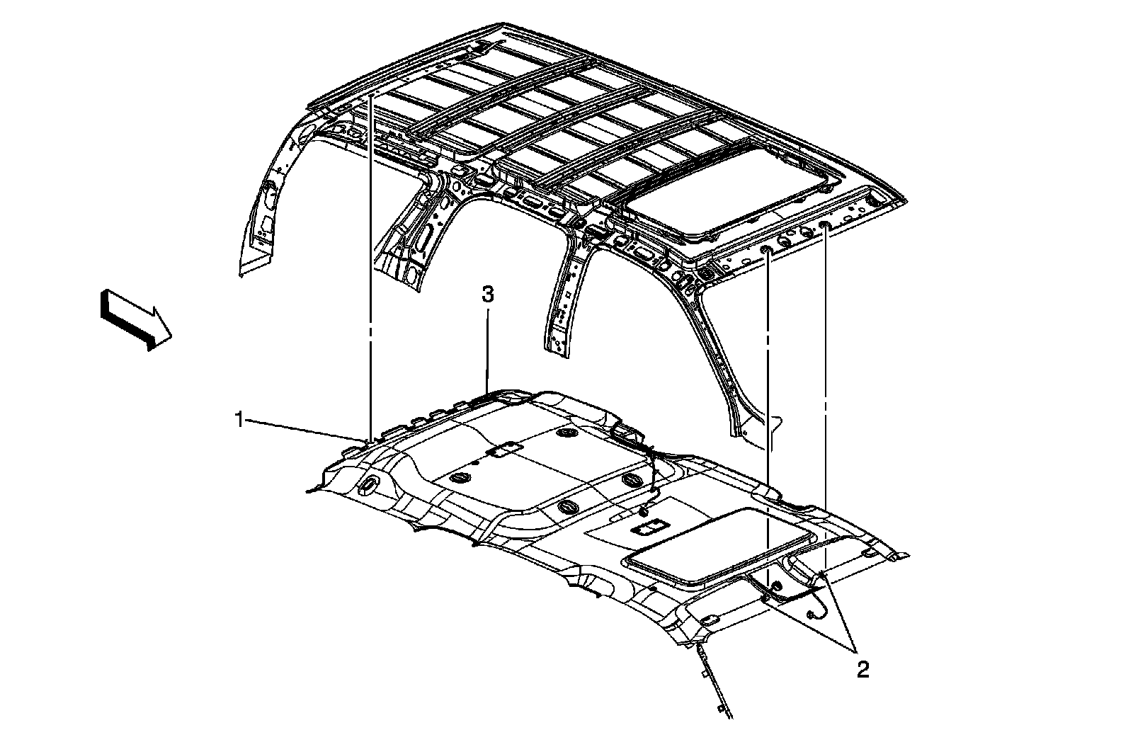 Headlining Trim Panel Replacement (SWB w/CF5 w/o U42)
