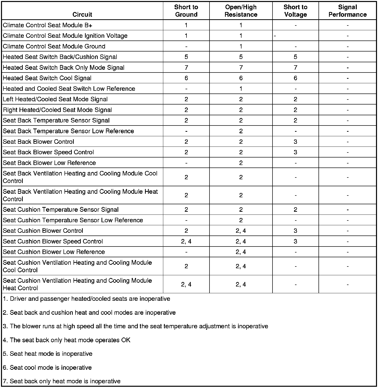 * Seat cushion blower speed control circuit terminal 7