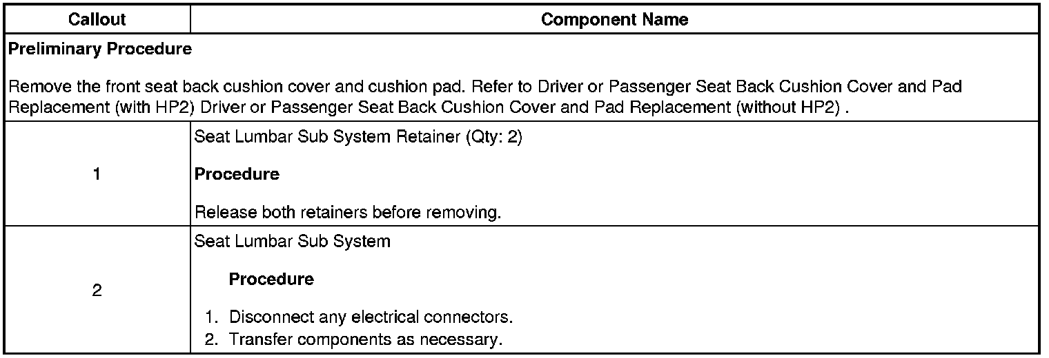 Seat Lumbar Sub System Replacement
