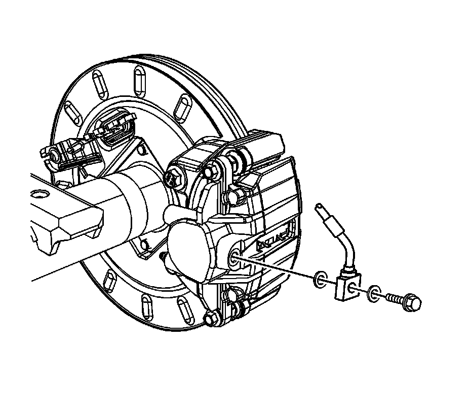 6. Install the brake hose to caliper bolt and tighten to 40 Nm (30 lb ft).