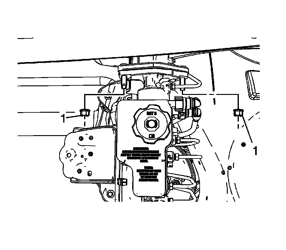 10. Install 2 new master cylinder nuts (1) and tighten to 33 Nm (24 lb ft).