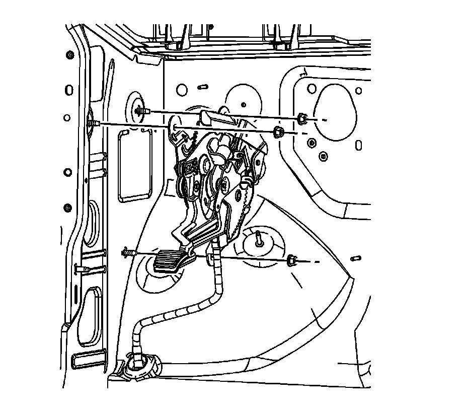 1. Remove the left side hinge pillar trim panel. Refer to Body Hinge Pillar Trim Panel Replacement Body Hinge Pillar Trim Panel Replacement.