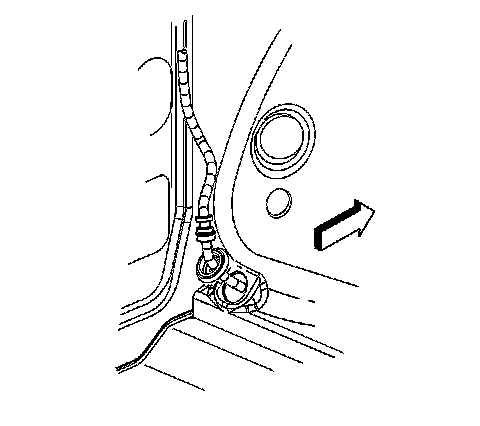 8. Install the hinge pillar trim panel. Refer to Body Hinge Pillar Trim Panel Replacement Body Hinge Pillar Trim Panel Replacement.