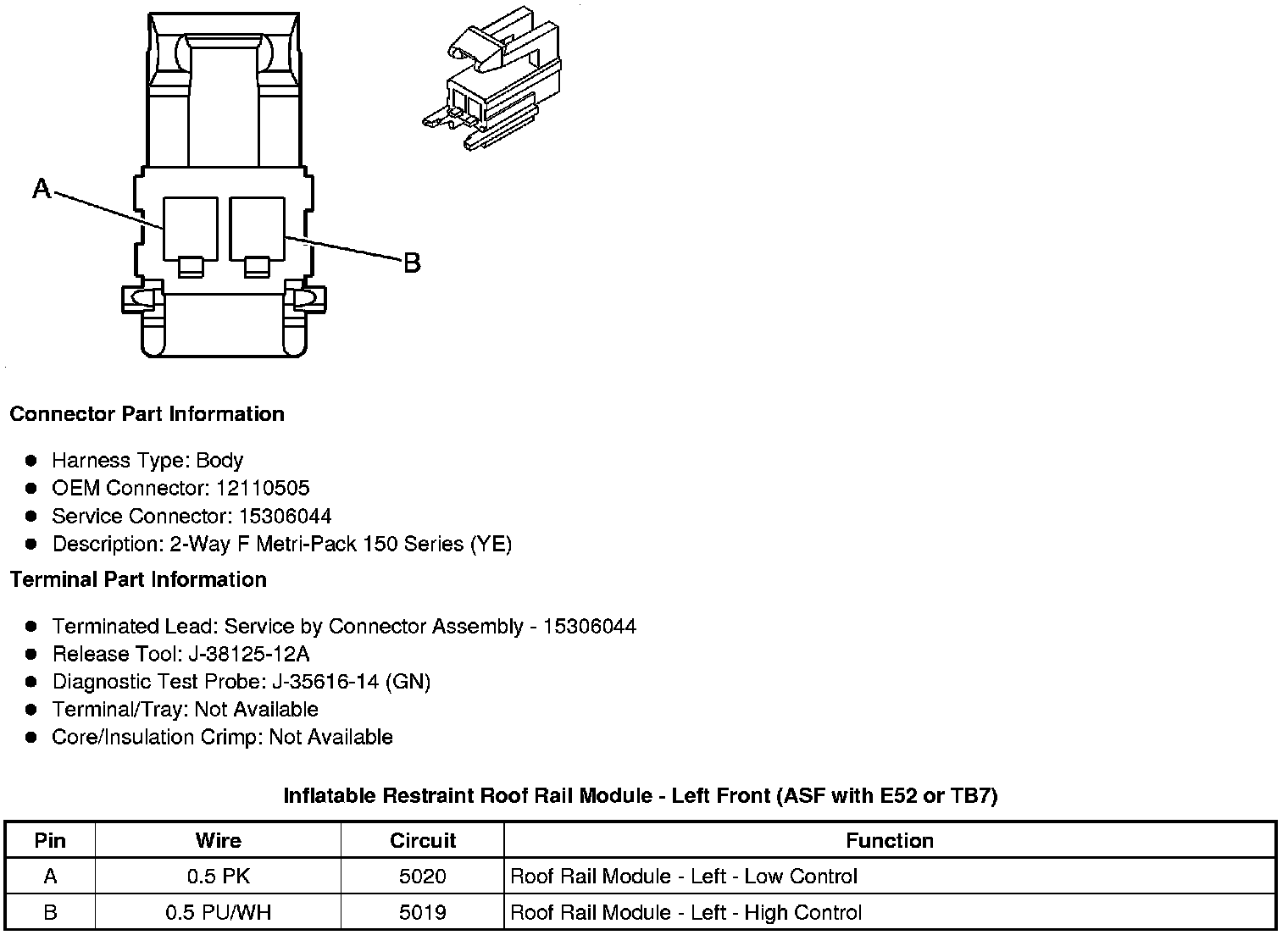 Inflatable Restraint Roof Rail Module - Left Front (ASF with E52 or TB7)