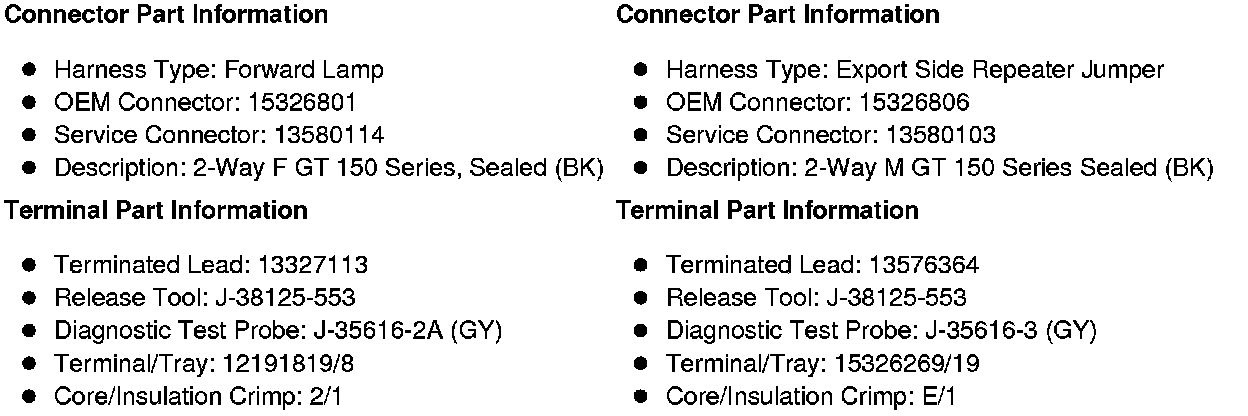 X118 Forward Lamp Harness to Export Side Repeater Jumper Harness (EXP)