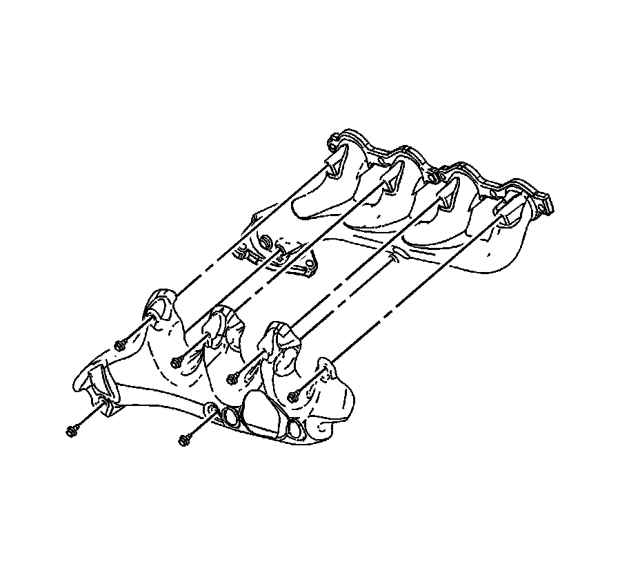 1. Position the exhaust manifold heat shield to the exhaust manifold and install the heat shield bolts and tighten to 9 Nm (80 lb in).