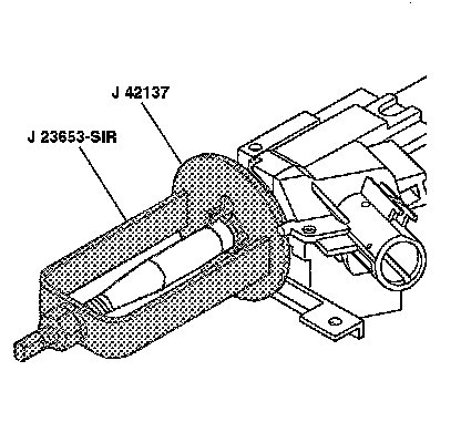 9. Install the new steering shaft lock plate retaining ring onto the steering shaft using compressor J 23653-SIR and adapter J 42137 .