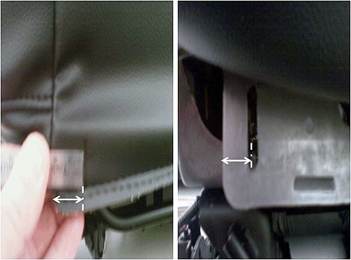 3. Using a ruler and marker, measure and mark the cushion trim to match up with the slots on the cushion pan J-retainer attachment tab location. Repeat this process on the opposite end of cushion trim cover.