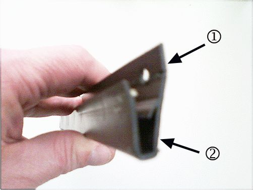 Ensure that the J-retainer is fully unrolled, and that the holes are drilled through the lower edge of the J-retainer (1) and not through the U-channel (2) of the retainer.