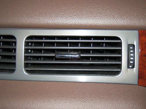 Some customers may comment on a loose/missing chrome insert from the center knob of one or more of the four IP HVAC air outlet deflectors. The area of the insert location is shown in the above graphic.