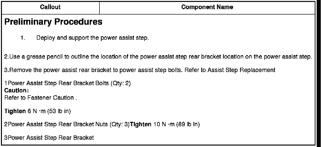 2Power Assist Step Rear Bracket Nuts (Qty: 3)Tighten 10 N �m (89 lb in)