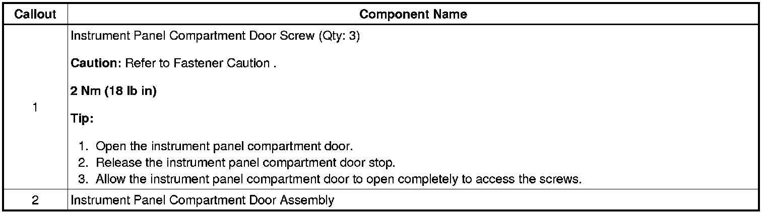 Instrument Panel Compartment Door Replacement (Except Cadillac)