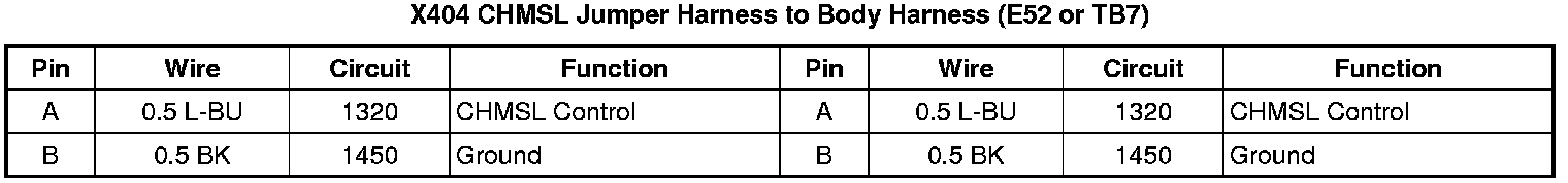 X404 CHMSL Jumper Harness to Body Harness (E52 or