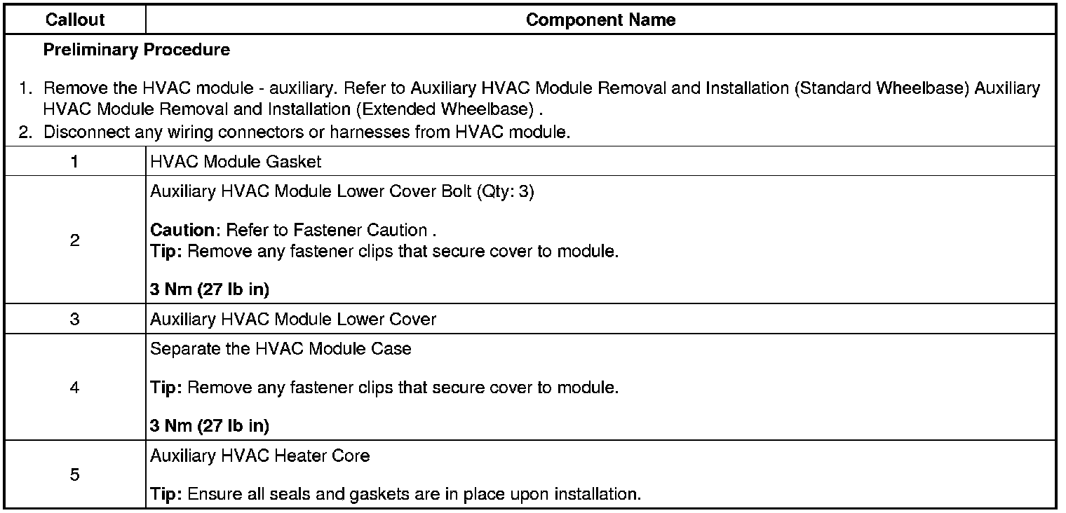 Auxiliary Heater Core Replacement (Standard Wheelbase)