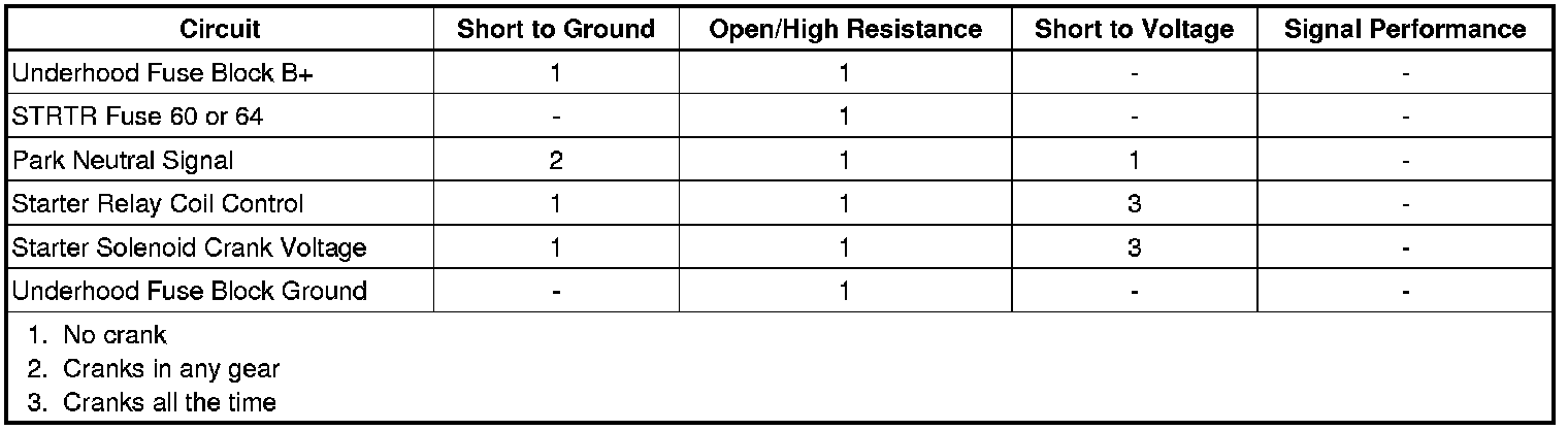 • If the test lamp does not illuminate, test the B+ circuit for a short to ground or an open/high resistance. If the circuit tests normal and the STRTR fuse is open, test the relay controlled output circuit for a short to ground.