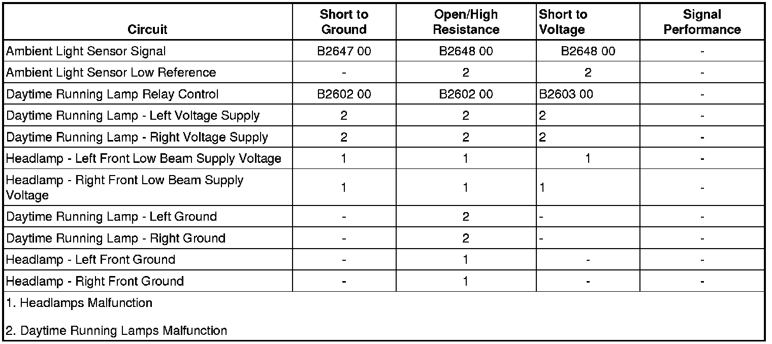 5. If all circuits test normal, test or replace the ambient light sensor.