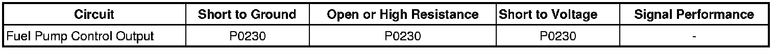 An open or a high resistance in the ground circuit of the fuel pump control module may set DTC P0230.