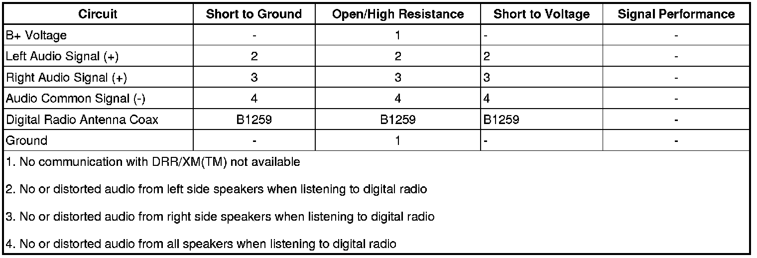 • If either side of the vehicle is not producing sound or the sound produced is distorted, refer to Digital Radio Signal Circuit Malfunction.