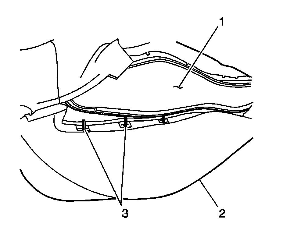 3. Remove the front seat cushion outer trim panel. Refer to Seat Cushion Outer Trim Panel Replacement Seat Cushion Outer Trim Panel Replacement.