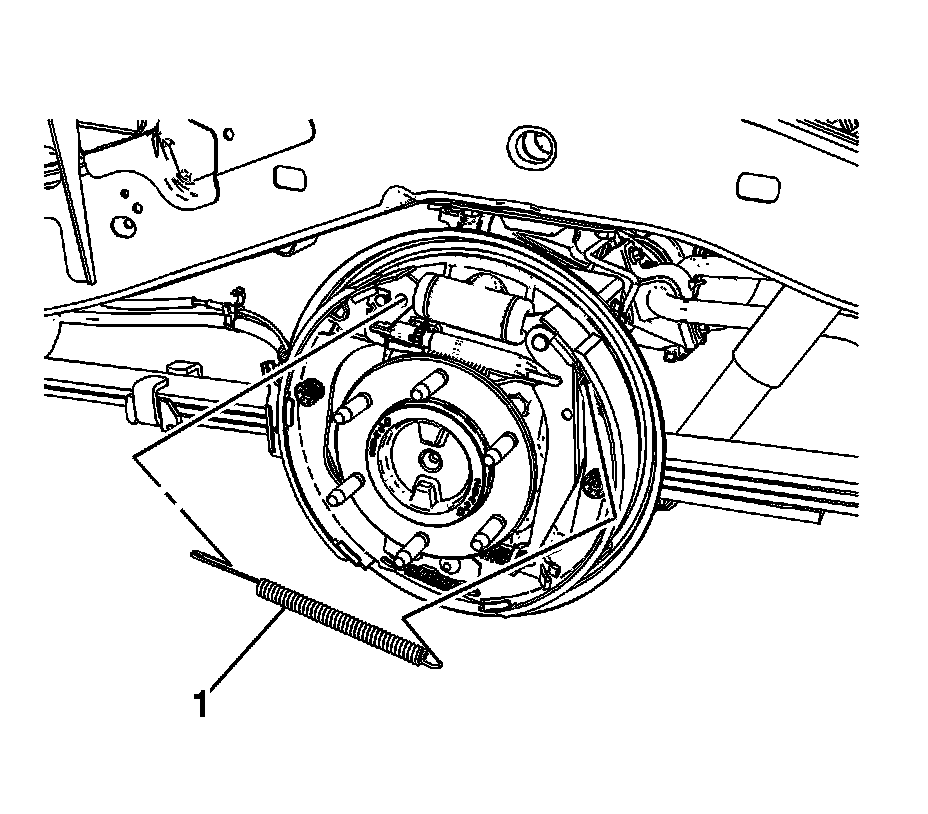 3. Remove the brake shoe adjuster spring (1).