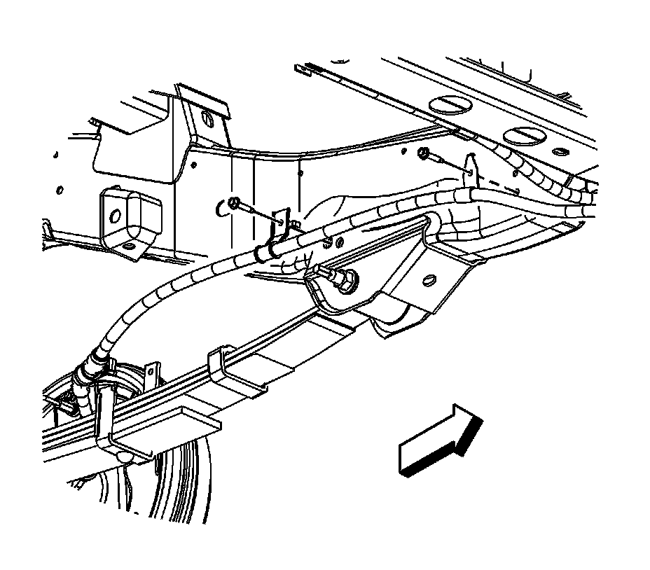 8. On short wheel base vehicles, remove the park brake cable from the left frame rail.