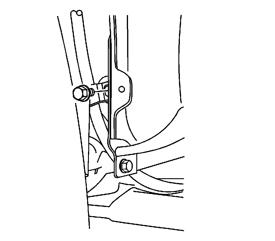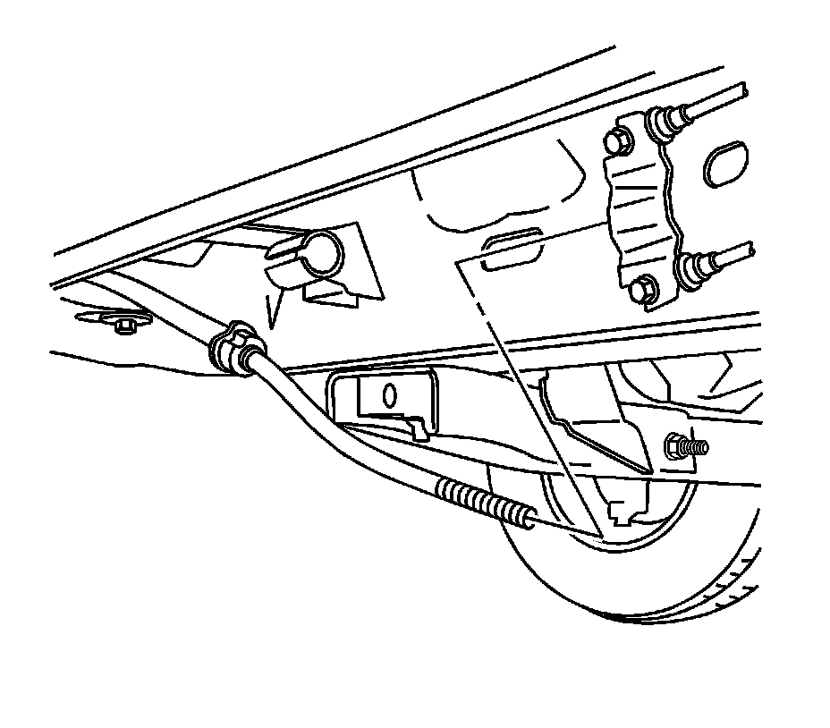 5. Install the retaining bolt for the front park brake cable at the wheel well and tighten the bolt to 20 Nm (15 lb ft).