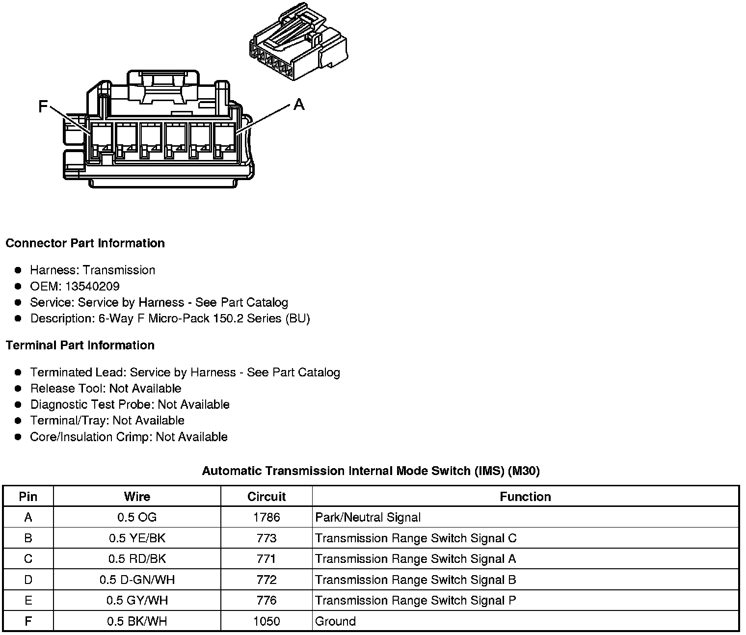 Automatic Transmission Internal Mode Switch (IMS) (M30)