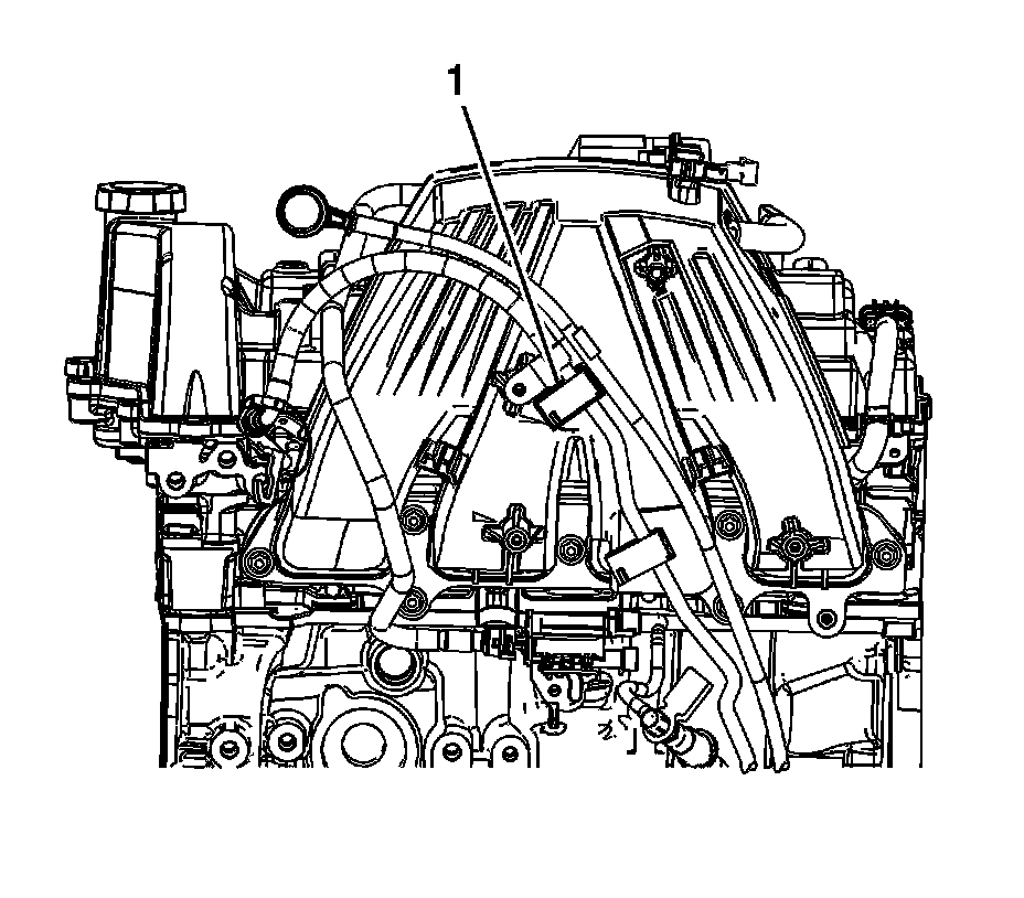 1. Remove the fuel line clip (1) from the oil level indicator bracket.