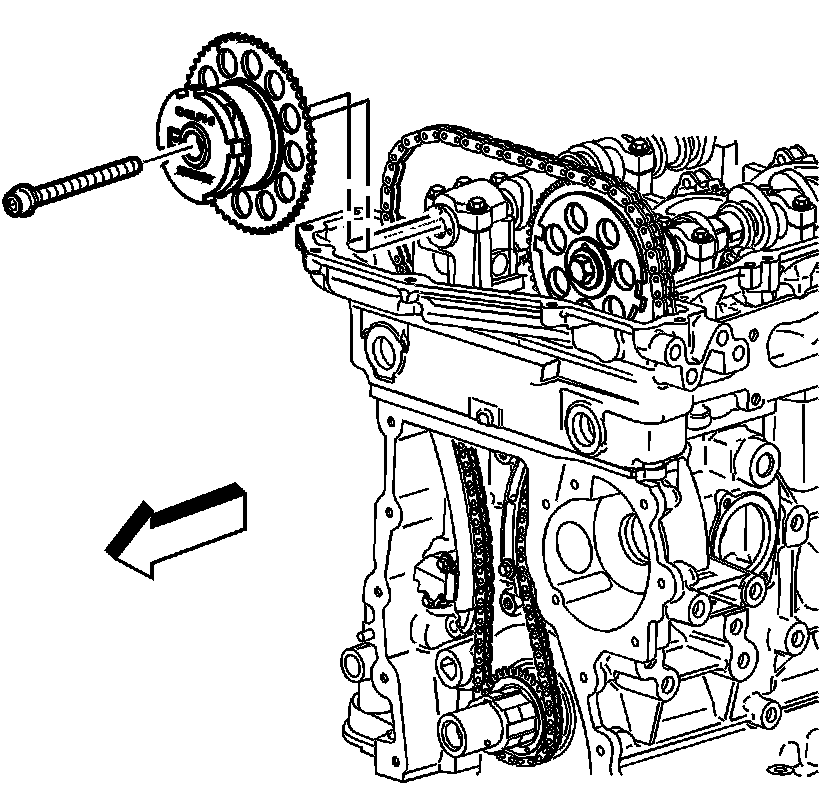 3. Remove and discard the exhaust camshaft position actuator bolt.