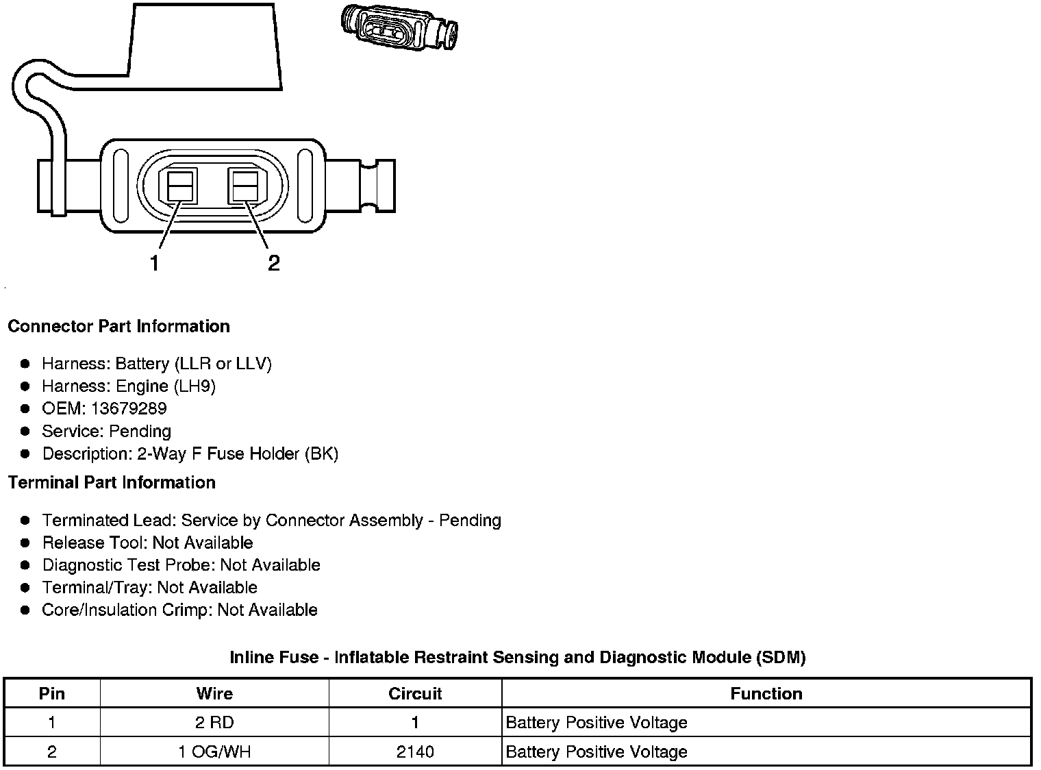 Inline Fuse - Inflatable Restraint Sensing and Diagnostic Module (SDM)