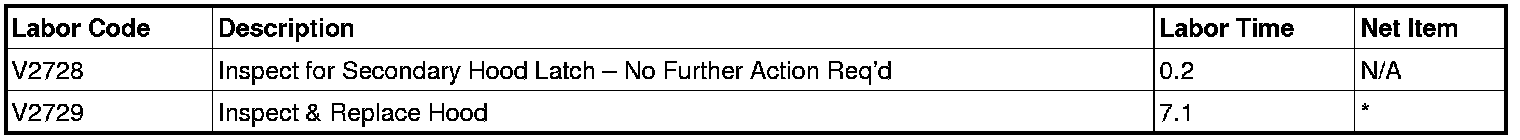 Dealers are to inspect for the presence of the secondary hood latch. If the latch is missing, dealers are to replace the hood.