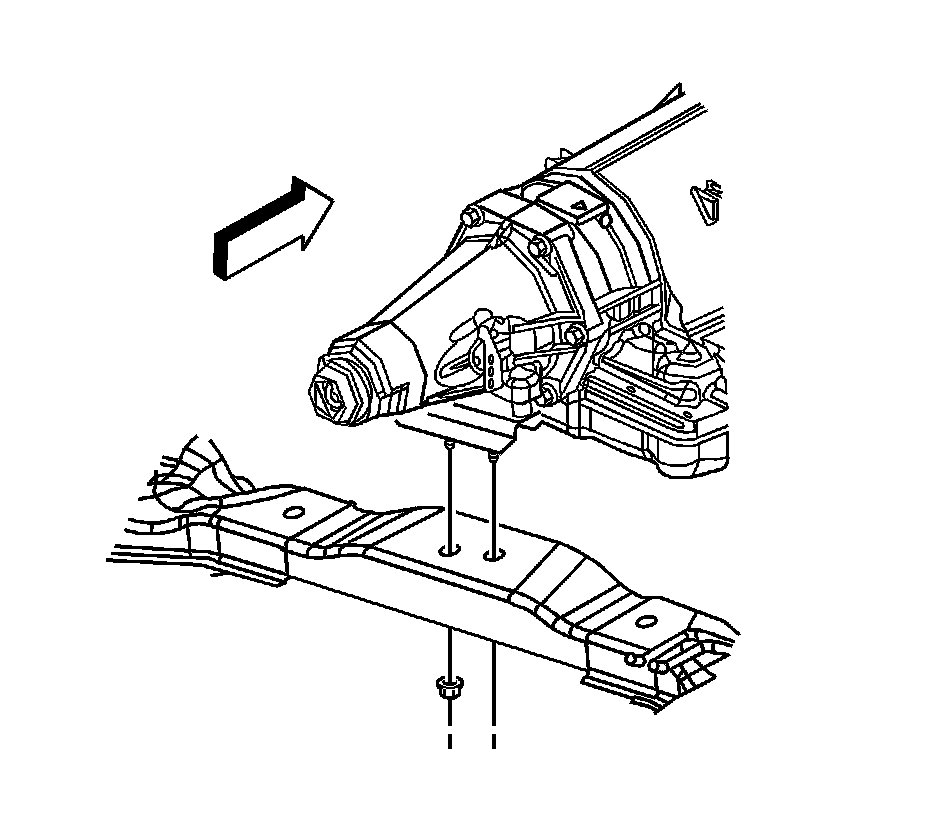 5. Lower the transmission and install the 2 nuts securing the transmission mount to the transmission support.