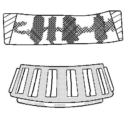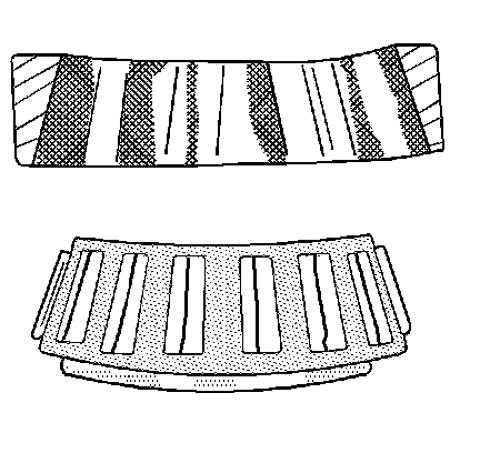 Wear around the outside diameter of the cage and the roller pockets caused by abrasive material. Wear caused from inefficient lubrication. Clean the related parts and the housings. Check the seals. Replace the bearings.