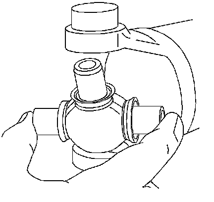 7. Press the opposite bearing cup into the yoke ear while working the cross all the time in order to inspect for free unbinding movement of the trunnions in the bearing cups.