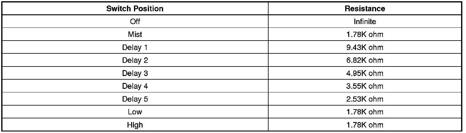 • If the DMM does not display at or near the resistance values provided replace the windshield wiper washer switch.