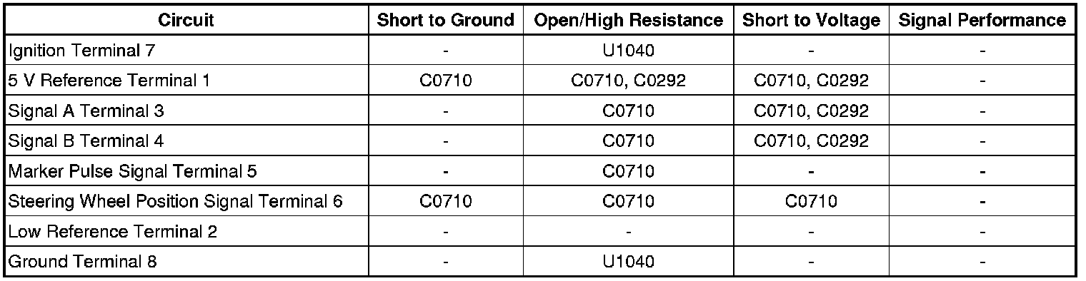 10. If all circuits test normal, replace the steering wheel position sensor. If the DTC resets, replace the EBCM.